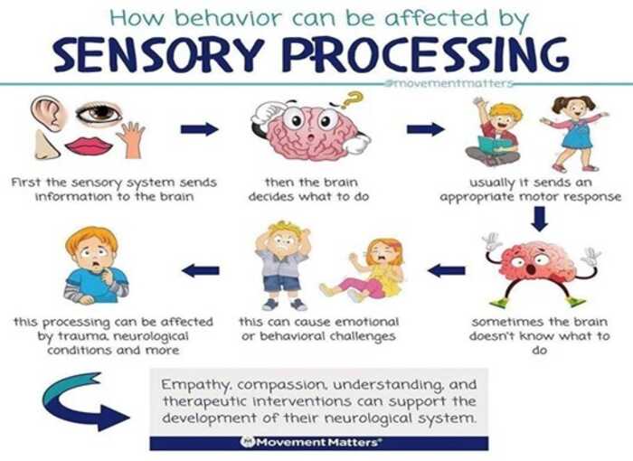 Problems in sensory integration/processing occur when a person’s nervous system is unable to process sensory information from the environment and the body effectively. So, a person may struggle to understand, process and adapt to sensory input. This means that they can often give an incorrect response to a situation.